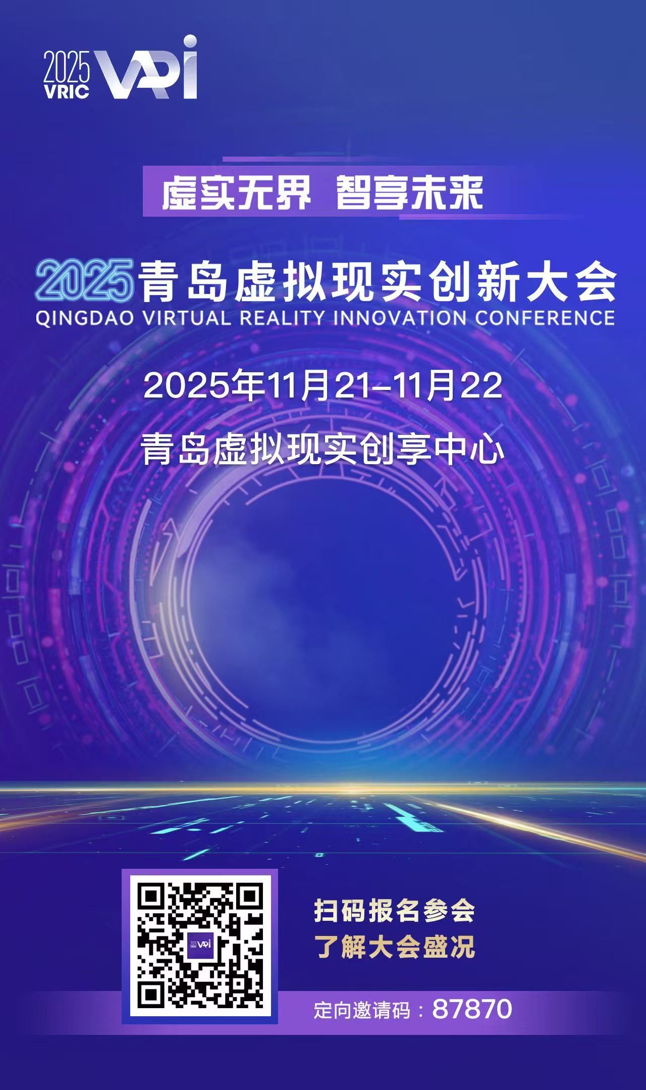 2025青岛虚拟现实创新大会(以下简称“大会”)将于11月21至22日在青岛虚拟现实创享中心拉开帷幕。大会以“虚实无界,智享未来”为主题,聚焦创新应用、产业集聚、成果转化、人才培育,设置多层次、多维度的产业活动,邀请行业专家、行业企业、科研机构、投融资机构、新闻媒体代表等共聚一堂,共同探讨虚拟现实技术发展、产业生态与应用创新,推动VR+AI深度耦合与跨界应用,助力青岛建设具有影响力的虚拟现实与人工智能融合创新高地。